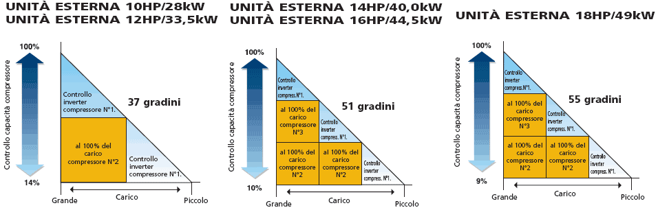 Le unità esterne da 5 e 8 HP utilizzano solo compressori con controllo ad Inverter.
