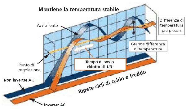 Tecnologia inverter Il sistema VRV lineare adotta una tipo di controllo PI